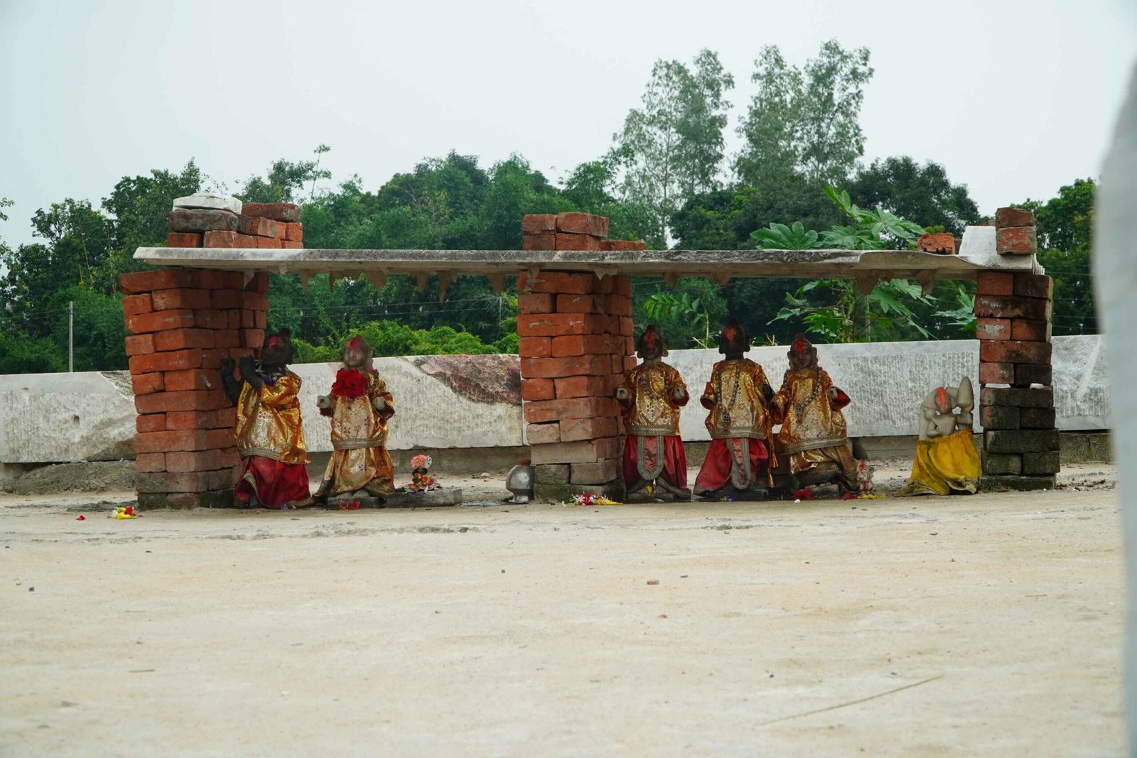But sadly, in 2021, due to a shortage of funds, the work came to a complete halt. Since then, the deities have been waiting under a temporary shelter for their rightful and divine abode.